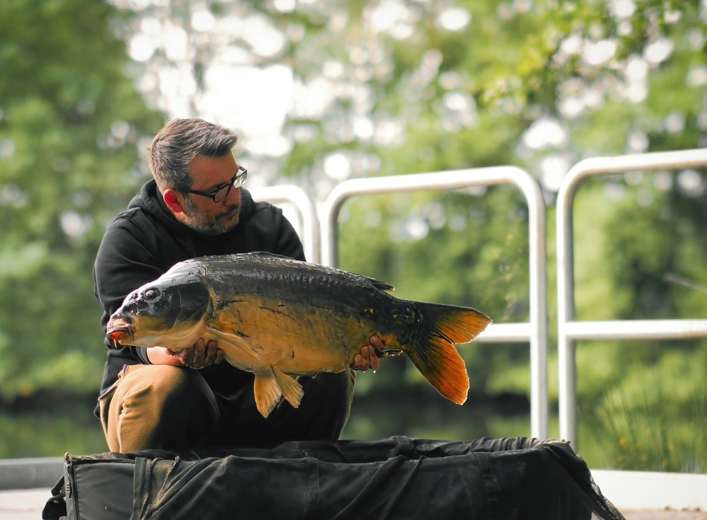 Bereits in der ersten Nacht zu Montag, lag der erste Fisch auf der Matte. Zwar ein kleines Exemplar, aber der Anfang war gemacht und es bestätigte mir, dass mein Futter angenommen wurde. Am Tage kam mein Cousin auch dazu und wir genossen die Zeit bei dem ein oder anderem Bierchen. In der Nacht zu Dienstag drehten die Fische auf einmal völlig durch. Es war alles dabei, Spiegler-, Leder- und Schuppenkarpfen. Das Durchschnittsgewicht war krass und der beste Fisch der Nacht hatte 21 kg. Ein kräftiger Schuppenkarpfen. Im Sonnenaufgang lag der erste richtig fette Spiegler auf der Matte. Und dann noch Halbzeiler mit satten 24 kg. Unglaublich was hier abging.