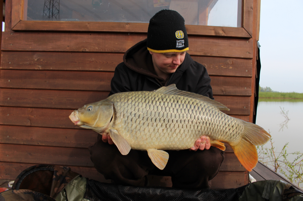Kurz nach 5 Uhr kreischte die Funke von George und im nächsten Moment standen wir bereits mit krummer Rute im dichten Nebel. George fuhr dem Fisch mit dem Schlauchboot entgegen und nach einem kurzen, knackigen Drill konnte er den Fisch sicher landen. Endlich hat es wieder geklappt und wir konnten uns sehr über den schönen 10 kg Spiegler freuen. Die ersten Sonnenstrahlen erreichten uns und wir lichteten den Fisch sofort ab damit George schnell seine Rute wieder neu ausbringen konnte. Danach legten wir uns wieder hin und genossen den Sonnenaufgang. Gegen 9 Uhr lief auch eine meiner Ruten wieder ab und ich konnte einen kleinen Spiegler von ungefähr 7 kg begrüßen. Ich hatte schon Angst die Spods wären tot. Wie angekündigt brachte der Wetterumschwung immer mehr und mehr Wind aus östlicher Richtung der sich im Laufe des Tages zu starken Windböen bis 30 km/h entwickelte. Wir mussten alle Ruten reinholen und uns dieses Mal mit den Seilen richtig an allen Ecken an den Weiden festbinden. Ob Klappanker oder 30 kg Klotz. Das Floss hat eine so hohe Angriffsfläche das der Wind uns einfach immer weiter vom Platz schob. Aber alles halb so wild, wenn man auf alles vorbereitet ist. Und so saßen wir im Anschluss der Aktion wieder im bombenfest stehenden Floss und bereiteten unsere Rigs vor. Nach und nach brachten wir unsere Ruten gegen die straffen Windböen wieder aus und brachten neues Futter für die letzte Nacht auf unsere Spods.