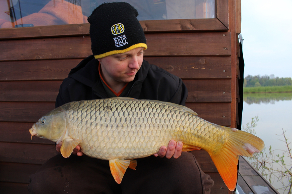 Bis in die Nacht rein gab es keine Fischkontakte mehr. Auch die hohen Aktivitäten an der Wasseroberfläche waren Rückläufig. Gegen 4 Uhr nachts meldete sich meine Funke zum Dienst und ein weiterer kleiner Schuppi lag kurz darauf im Kescher. Den Haken gelöst und den Fisch ohne Umwege zurück ins Wasser gesetzt, legte ich die Rute neu aus. Ich lag noch nicht mal auf der Liege da klingelte die andere Rute. Wieder war es ein kleiner Schuppi der sich meinen Boilie einsaugte. Nachdem auch diese Rute wieder auf ihrem Futterplatz lag, war es schon hell geworden und ich konnte weiterschlafen. Gegen 7 Uhr lief erneut eine Rute ab. Aber diesmal ein ordentlicher Fullrun. Ich merkte sofort, dass es sich nicht um einen kleinen Spritzer handelt. Ich nahm Druck von der Rute und fuhr dem Fisch entgegen. Der Fisch war schon weit hinter dem eigentlichen Spod und die Schnur verlief durch mehrere vereinzelte Weiden. In diesem Fall hing die Schnur aber nirgendwo fest und der Fisch „wartete“ ruhig mitten in einer großen Weidenlücke. Über dem Fisch baute ich wieder Druck auf und ein spektakulärer Drill im Weidendschungel begann. Nach einigen heiklen Aktionen in denen mich der Karpfen quer durch die Weiden zog, konnte ich den Kampf für mich entscheiden und begrüßte den ersten besseren Fisch in den Maschen meines Keschers. Einen wunderschönen kurzen Spiegler von 11,5 kg konnte ich kurz darauf in den Händen halten. Absolut klasse. Bei George lief kurze Zeit später die erste Rute ab, aber wieder vom Pech verfolgt, schwamm der Fisch um einen Baumstamm und konnte sich vom Haken befreien. Etwas Frust war nach dieser Aktion zu spüren, denn auch George war überzeugt einen besseren Fisch im Drill gehabt zu haben. Und da das nicht reichte piepte schon wieder eine meiner Ruten und ich konnte wieder einen kleinen Schuppispritzer landen.