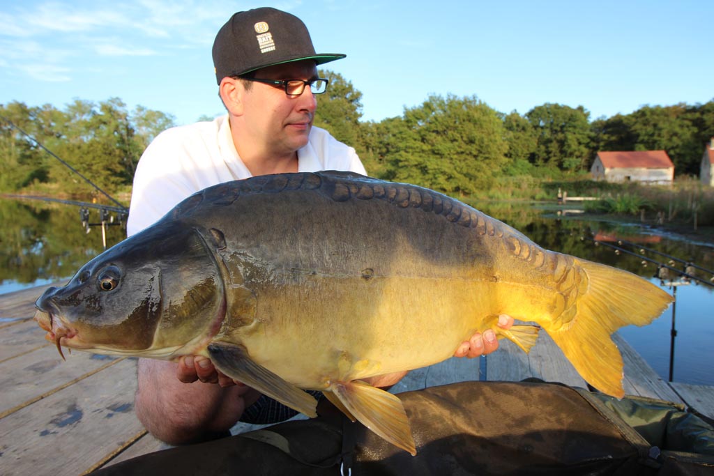 „Ganz Ruhig“ waren meine Gedanken „ich habe noch jede menge zeit“ waren meine gedanken. Tja in der zweiten Nacht heulte mein Delkim auf und er pflehte um Gnade ihn zu erlösen als ich aufm Nebelverhangnem Steg stand. Der Drill gestaltete sich Druckvoll und nach einiger Zeit konnte ich meinen ersten Franzosen in die Maschen meines Keschers führen. Ein 15 kg Spiegler!!! Ein super Einstand würde ich mal sagen.