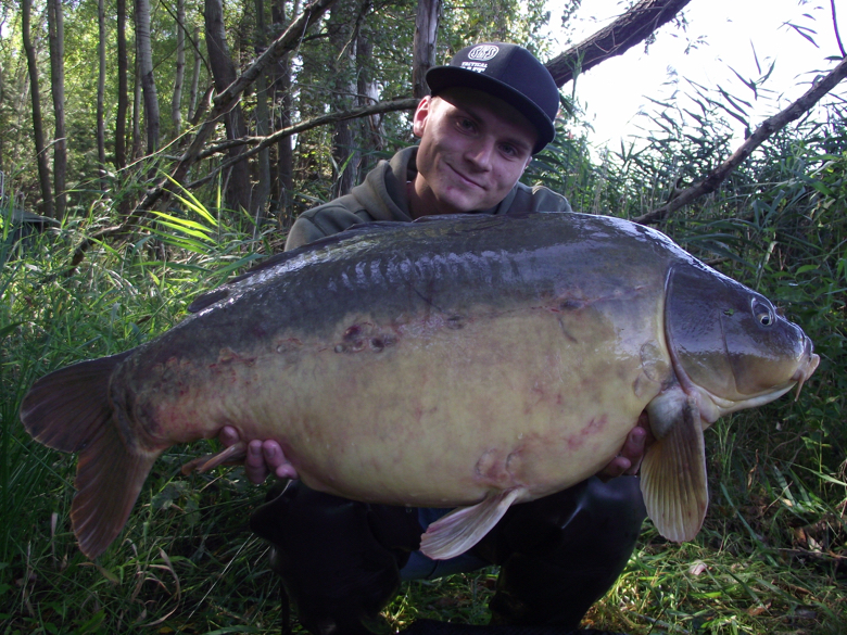 Doch um halb 7 lief die erste Rute ab und ich konnte einen schönen Spiegelkarpfen mit 13 kg zum Landgang überlisten.