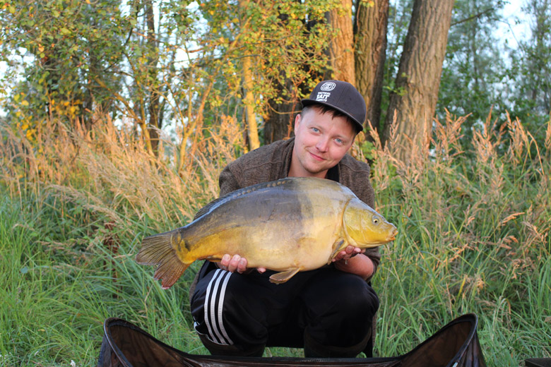 Nach einem heißen Tag wollte ich direkt wieder auf die Stelle fahren. Dieses Mal ging es noch schneller. Sowie ich mit der zweiten Rute am Set stand und sie in den Bissanzeiger legen wollte, riss es mir auf der anderen Rute wieder kurz Schnur runter. Wieder nicht gehakt… Naja war sicher nicht der letzte Biss, dachte ich mir. Und so war es auch. Wieder konnte ich mehre kleinere Exemplare überlisten und einen Fehlbiss verbuchen. Besonders gefreut habe ich mich allerdings über einen kleinen Käsekopf-Spiegler. Also ein Twotone dessen Kopf nicht gelber hätte sein können. Es ist doch immer wieder schön, wie unterschiedlich, besonders Spiegelkarpfen, in ihrer Erscheinung sein können. Die Graser wollten wieder nicht und so zog ich wieder von Dannen.