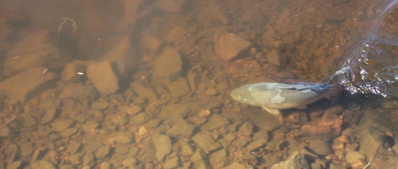 Um 9.00 Uhr traf ich an meinen angelplatz ein und machte die ersten Würfe. Nach einen gemütlichen frühstück am Wasser waren die fischen noch nicht recht aktiv.