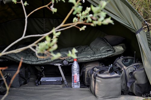 Mit dem nötigsten Tackle wird die zweite Mai-Session eingeleitet. Das Quecksilber klettert bis auf 30 Grad Celsius. Das Wasser war trüb und ich konnte keine Fische ausmachen. Auch wenn es schon fast 3 Wochen her war, wollte ich da anknüpfen wo ich beim letzten Mal aufgehört habe. Die Spots blieben die gleichen, dafür wurde die Futtermenge erhöht. Abgesehen von 2 großen Schleien blieb es in der Nacht wieder einmal ruhig. Aber darum muss man den Mai lieben, da sich die meisten Aktionen tagsüber abspielen. So geschehen wieder ein Mal an diesem Tag.