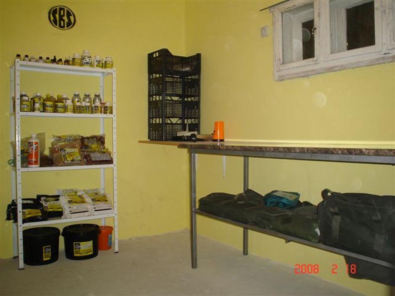 Beszórtuk az ebből készített gombócokat és vártunk. Egyszer csak, megtörtént a csoda az etetésünkön és elkezdtük fogni a halakat Zsolti barátommal. Egyik kapás után a másik. Hol én fárasztottam a halat, hol Zsolti. Majd arra lettünk figyelmesek, hogy sokan a hátunk mögött állnak és csak arról próbálnak érdeklődni, hogy mivel horgászunk, és mivel etettünk, mert rajtunk kívül, továbbra se fogott senki halat, csak kizárólag mi. Ráadásul, kizárólag előttünk fürödtek a halak is. Ekkor, az Ivica esetből tanulva, mindketten büszkén mondtuk, hogy SBS termékekkel. Ez, csak egy alkalom a sok élményből, amit az SBS termékeknek köszönhetünk és biztosak vagyunk abban, hogy az SBS minőségének köszönhetően, még nagyon sok ilyen lesz. Egyre jobban kezdtünk belemerülni a bojlikészítésbe, de mindig pakolásztunk, keresgettük a hozzávalókat. Valami mindig hiányzott, mert nem találtuk. Egyszer az aroma maradt otthon, máskor a recept marad Zsoltinál, ezért az idén télen megemlítettem - a horgászati elvonási tünetektől szenvedve -, hogy milyen szuper lenne, ha a régi alsókonyhát átalakítanánk, átfestenénk és egy szuper bojlikészítésre alkalmas (boszorkány) konyhát és raktárt készítenénk belőle. Ráadásul, mindent egy helyre tehetnénk és nem kellene többet keresgetni. Mivel Zsoltnak is tetszett az ötlet, másnap már pakoltunk, takarítottunk, gipszeltünk, majd végül kifestettünk. Eltartott egy darabig, de jó volt látni, ahogyan nap, mint nap, szebb lett a konyha és tudtuk, hogy milyen hatalmas élmény lesz, itt készíteni a rendkívüli SBS golyókat.