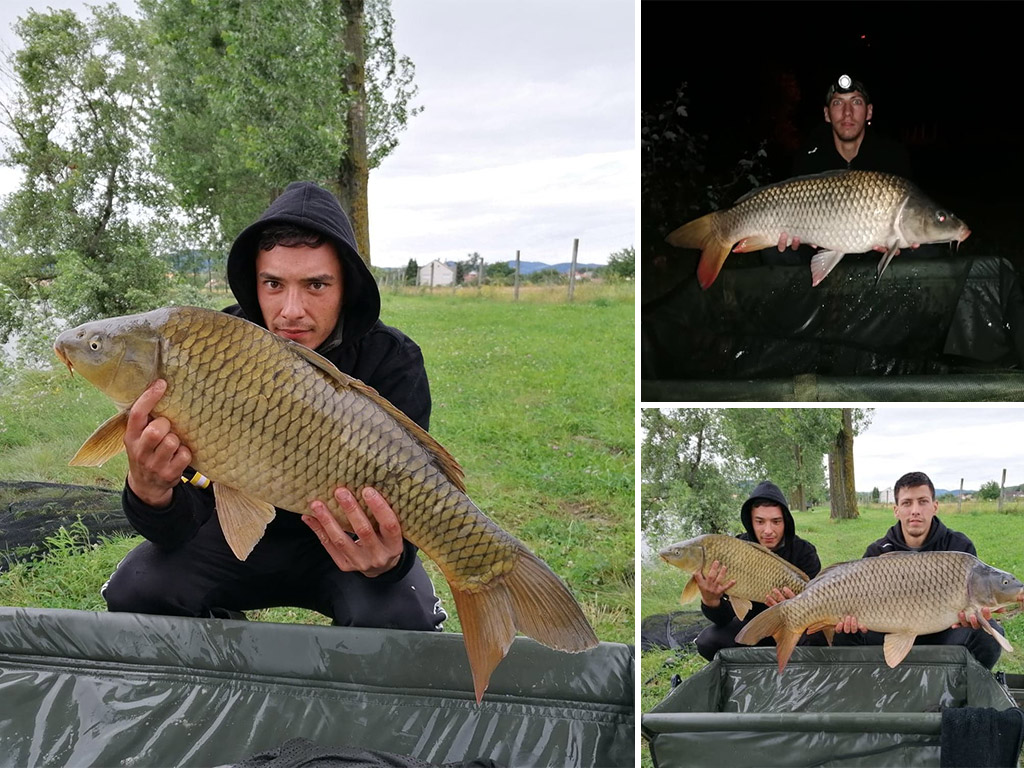 Az egyik etetésünket a parttól körülbelül 40 méterre, dobócsővel botonként 10-15 szem bojlit dobálva, amíg a másikat a hely bal oldalán, 20 méterre található nádas előtt alakítottuk ki, amit előbb magokkal, később kizárólag bojlival etettünk. Csalizást követően eredményes éjszakában reménykedtünk, ami nagyszerűen sikerült, hiszen 21 óra után egy 10 kg feletti, éjfél előtt egy 9 kg feletti pontyot sikerült szákba terelni. Éjfélre már 2 halunk volt, ezzel felülmúltuk eddigi horgászatainkat ezen a tavon. A szombat délelőtt elég csendesre sikeredett, a halak nem voltak jó kapó kedvüknél. Próbálkoztunk pár csali kombinációval, de sikertelenül.