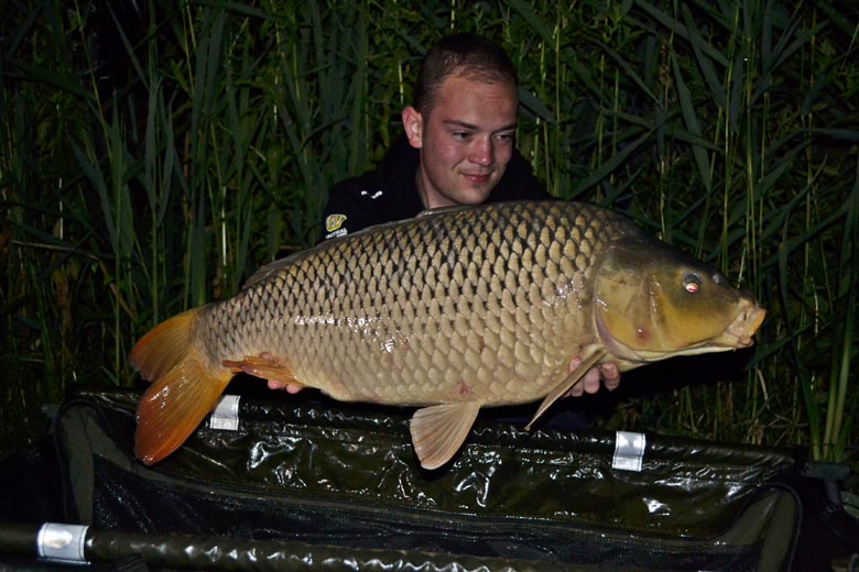 Nem csak nekem jutott ki a jóból, öcsém, Levente is fogott egy pontyot. Ráadásul nem is akármilyen pontyot!