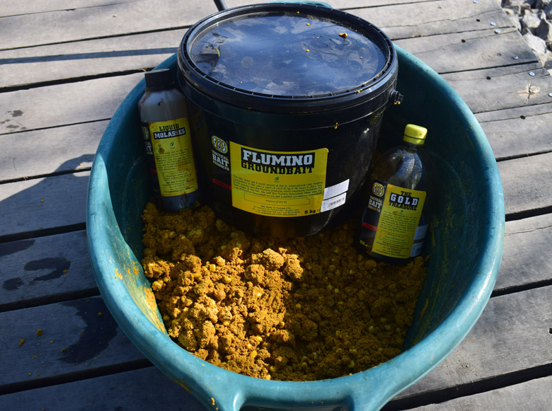 Napközben, kiegészítő etetésként Flumino Groundbait-ből készített gombócokkal frissítettem, amit Liquid Molasses-szel, Gold Treasure Spicy-val és egy kevés maggal kevertem be.