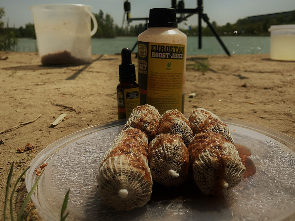 Ezután éreztem, hogy ebből lesz még pár szép hal az etetésen, így fel is készültem, gyorsan készítettem 6 db PVA-t, amit szintén lelocsoltam Boost Juice-zal és kitettem a napra melegedni.