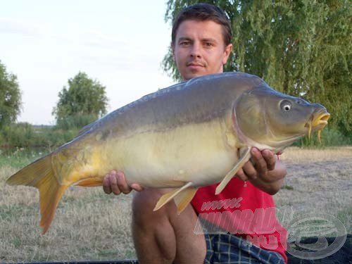A harmadik napon már olyan jelentős előnyre tettünk szert, hogy az emberek megkérdezték, hova ez a nagy kapkodás, mi már biztos nyerünk, mennyit akarunk még fogni, 1000 kilót? Ekkor ültették a bogarat a fülünkbe, hiszen átlagot számolva reális esélyünk volt a rekord elérésére. Ez még nagyobb lelkesedést öntött belénk. De sajnos a lelkesedésünket beárnyékolta az, hogy Andris társamnak 3. nap este halaszthatatlan családi okból kifolyólag távoznia kellet a versenyről, így külön engedéllyel az elkötelezett segítőnk, Bessenyei György lépett a helyére. Ez egy kis hátrányt jelentett, mert eddig ő gyúrta nekünk a gombócokat és segédkezett a halak elrakásában, mely szintén jelentős időmegtakarítás volt számunkra. Miután Andris elment, feltámadt a szél. Egy kis idő elteltével olyan szintű kapássorozat következett, mellyel én még életemben nem találkoztam. Amint kifárasztottuk a halat, nyomban úgy, ahogy rajta volt a bojli, dobtam is vissza, és mindegy, hogy hová esett, 5 percen belül elhúzta egy újabb ponty. Volt, mikor 3 boton volt kapás és kettővel fárasztottunk, egyet pedig az állványunkra visszahelyeztünk áthajtva a nyeletőféket… és az újracsalizás után, szerencsénkre, még mindig meg volt az állványra helyezett bot végén az előzőleg megakasztott hal. De mire kifárasztásra került, már húzta is a következő boton lévő szereléket egy újabb áldozat. A szerencsénk az volt, hogy akkor érkeztek a mérlegelők, mikor ez a kapássorozat beindult, és a kifogott halakat nem kellett egyenként a pontyzsákba eltenni, ezzel nem veszítettünk értékes időt. A mérlegelők futószalagon mérlegeltek. Idejük sem volt arra, hogy az addig a pontyzsákokban figyelő, több mint 100 kg összsúlyú pontyot lemérlegelhessék. Csak a folyamatosan fogott halakkal foglalkoztak. Mire az összes halat lemérlegelték és lecsendesedett a kapássorozat, több mint 2,5 óra telt el! Ezúton is szeretném megköszönni a segítőkézségüket és türelmüket a mérlegelő fiúknak és a szomszédainknak, akik türelemmel végigvárták az összes mérlegelést és hitelesítést! Köszönjük!