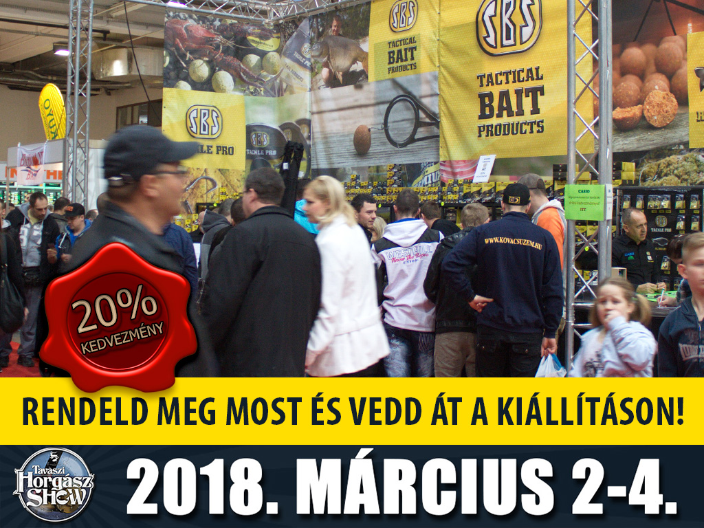Sok szeretettel várunk minden kedves érdeklődőt a tavaszi Horgász Show-n, 2018. március 2-4-ig a BOK csarnokban (volt SYMA), az SBS standon! A három napos rendezvényen a kedvező áron kínált termékek mellett már a 2018. évi újdonságokkal is megismerkedhetnek az érdeklődők. A rendezvényen lehetőség nyílik személyesen találkoznotok az SBS csapat tagjaival, akik örömmel segítenek a csali- és szerelékválasztásban és szívesen válaszolnak minden kérdésre!