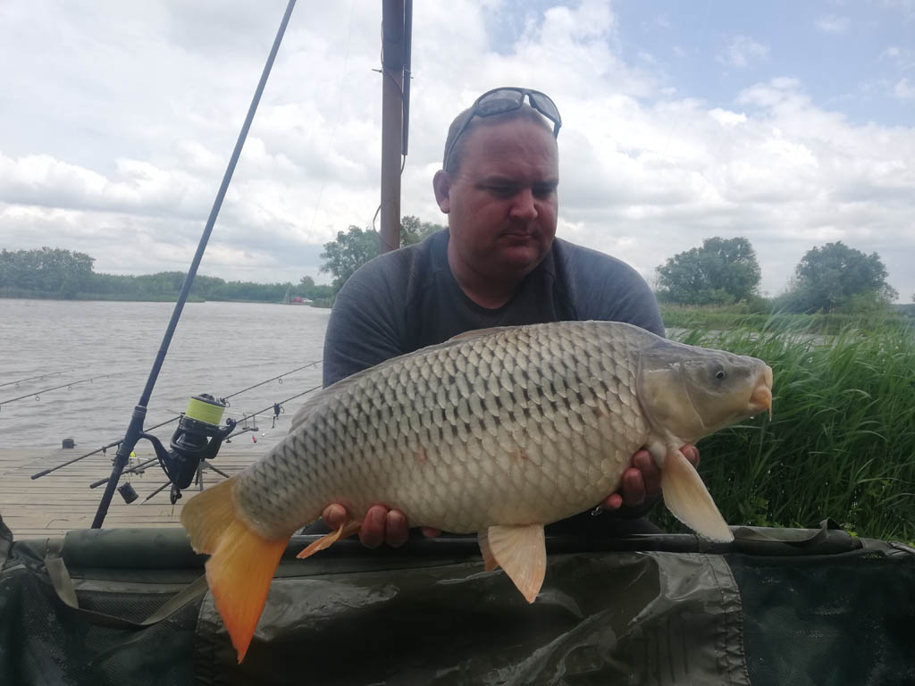 Az első kapásig Dávidnak alig fél órát kellett várnia. Erős húzós kapás volt és a hal a végsőkig keményen ellenállt. Dávid meg is jegyezte, hogy a háta is belefájdult. Egy 11,70 kg-os töves volt. Másnap reggelig 10 kapásunk volt, nyolcat sikerült megszákolnunk. Ráadásul, egész éjszaka esett az eső, de szerencsére a part homokos, így nem kellett csúszkálnunk a sárban.