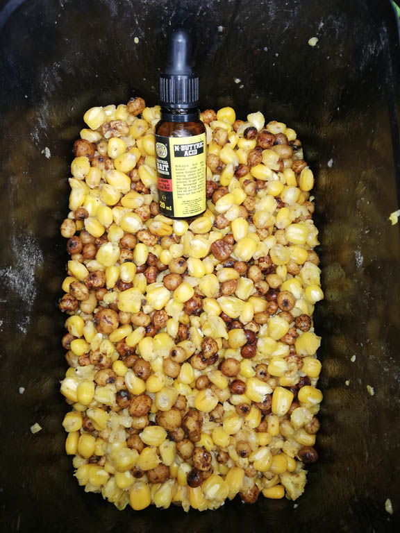 Az én bójámat a félsziget sarkánál helyeztük el, balra tőle nyílt víz, jobbra nád és fák nőttek egy öböl részben, amely remek búvóhely uszonyos barátainknak, ugyanakkor meghorgászhatatlan. Egy méterről lankásan mélyült két méterig a kemény aljzat, amit tíz centis lágy iszap váltott fel. Így kb. 10 négyzetméternyi etetésem volt, amelyet pellettel, és bojlival szórtam meg.