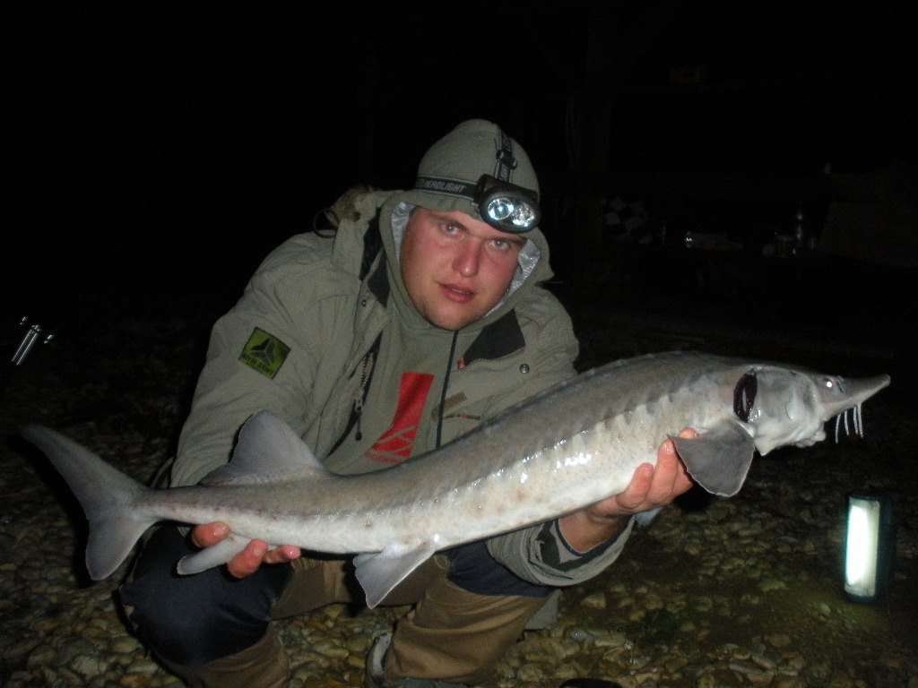 A nap folyamán is egyre másra jöttek a szebbnél szebb pontyok. Érdekes, de nappal csak az M1-es etetésről sikerült halat fogni. Nagyon jól beálltak ide bajszos barátaink. Napközben minden behúzás alkalmával egy maroknyi M1-es bojlit dobtunk a leeresztett végszerelék köré. Feleslegessé váltak a pelletek és a magvak. Észrevettük, hogy a bojlival lehetett legjobban helyben tartani a halakat. A nappalt 8 db hibátlan bajszossal zártuk. Az este során darabosabb halakat sikerült horogvégre csalni. Legnagyobb meglepetésünkre az M1-es etetésen sikerült fogni egy csodálatos 4,5 kg-os, 85 cm-es lénai tokot! A kapása ejtős volt. Akasztás után éreztem, hogy más hal van a horgon, mint eddig. Nagyon erős és hirtelen kirohanásokat csinált. 10 perces fárasztás után is még csak fél távon volt a hal. További 5 perc kellett ahhoz, hogy partközelbe tudjam csalogatni. Mire meg sikerült meríteni ő is, én is meglehetősen elfáradtunk.