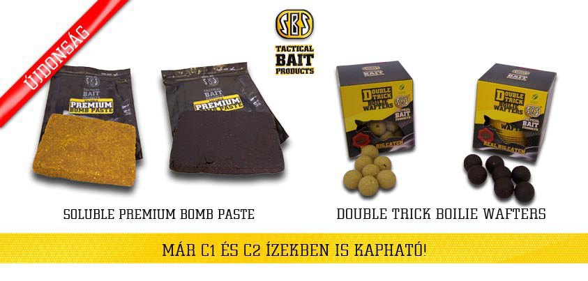 Új versenyszériás termékek az SBS kínálatában! Az idei évben bevezetett C betűvel (C=Competiton) fémjelzett versenyszéria sikerein felbuzdulva tovább bővítettük a termékkínálatunkat, amelynek eredményeként a mai naptól C1 (vajkaramella-tigrismogyoró) és C2 (tintahal-áfonya) ízekben is kaphatóak a Double Trick Boilie Wafters és a Soluble Bomb Paste termékek.