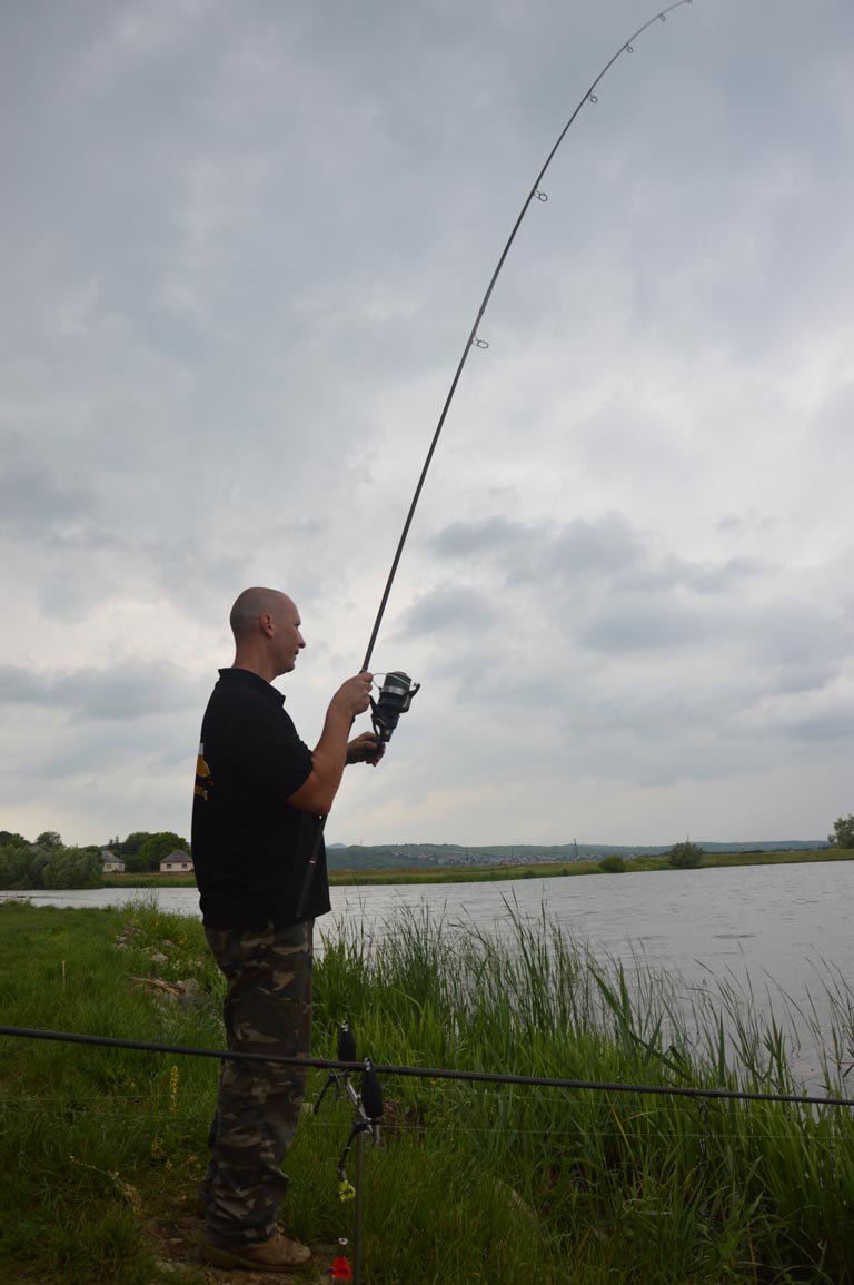 Az elkészült etetőanyagot Spombbal és method kosárral juttattuk el a kiszemelt horgászhelyre. Kétfajta állagú keveréket készítettünk: egy jobban tapadó, szárazabbat a kosárba, és egy lágyabbat a Spombozáshoz.