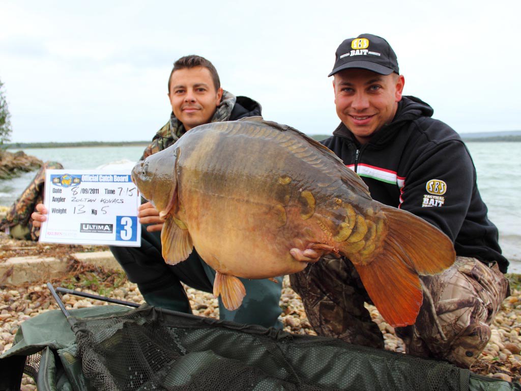 Határtalan volt az örömünk, hiszen ezen a vízen köztudottan nem egyszerű halat fogni. Még 3 nap volt hátra a verseny végéig, így abban bíztunk, hogy a folyamatosan etetett helyek lassan beérnek és sikerül még egy-egy nagyobb testű halat horogra keríteni. Csütörtök kora délután ismét megtört a csend és a semmiből jött eseményre reagálva a csónakban tértem magamhoz. Bandi a hajó orrában állva tekerte az orsó hajtókarját, amikor utolérve a halat karikába hajlott a bot. A tiszta vízben felvillant egy sárgás test, amely újra és újra a mélybe tört. Néhány perc múlva már a part felé hajóztunk vele és biztosak voltunk benne, hogy ez a hal már a 15+-os kategóriába tartozik. Ilyenkor azonnal értesíteni kell a bírókat, akik éjjel-nappal készen állnak a fogott hal mérlegelésére, hiszen a legfontosabb szempont a hal épsége. A mérés eredményeként 18,90 kg került rá a mérlegelési jegyzőkönyvre, így mesébe illő fogással vágunk neki a verseny hátralévő részének.