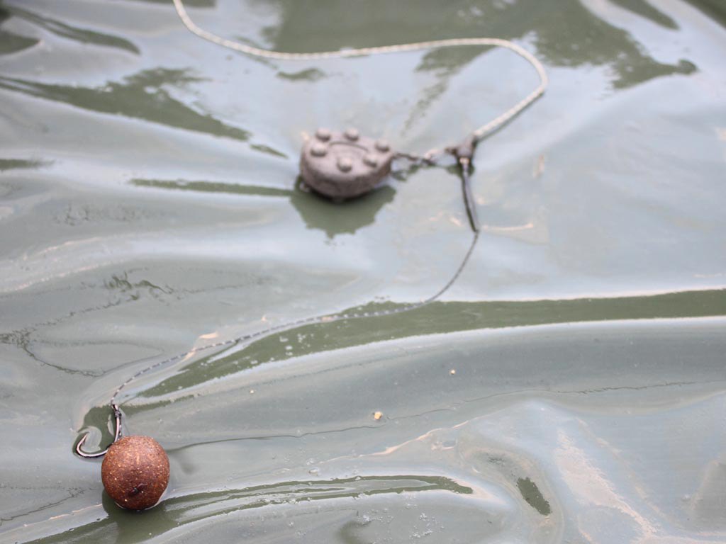 A start után néhány perccel már vízen voltunk és elkezdtük feltérképezni az előttünk lévő területet. A tőlünk balra lévő móló vaslemezekből készült külső fala tele volt apró kagylókkal, ráadásul Zoli a csendes helykeresés közben egy 20 kg körüli pontyot látott fordulni a közelben, így egyértelművé vált, hogy az egyik szereléket itt helyeztük el. Az előttünk lévő első 100 méteren a gyakori és sűrű hínárfoltok lehetetlenné tették a horgászatot, ugyanakkor az ennél távolabbi részeken tiszta, akadóktól és vízi növényektől mentes szakaszt találtunk. Több bóját helyeztünk el a két különböző terep határára, bízva abban, hogy a pontyok a nyílt vízről érkezve gyakran látogatják a táplálékban gazdag hínármezőket. A verseny jó alkalmat adott a 20+ Premium széria bojlijainak utolsó tesztelési fázisához, hiszen ez a csali éppen az itt tapasztalt körülményekhez lett kifejlesztve. Mivel hatalmas dévérkeszegek lakják a tározót, a csalinak akár 1-2 napot is ki kell bírnia a vízben úgy, hogy ellenáll a fehér halak támadásának, ugyanakkor ennyi idő után is vonzó marad a nagy pontyok számára.