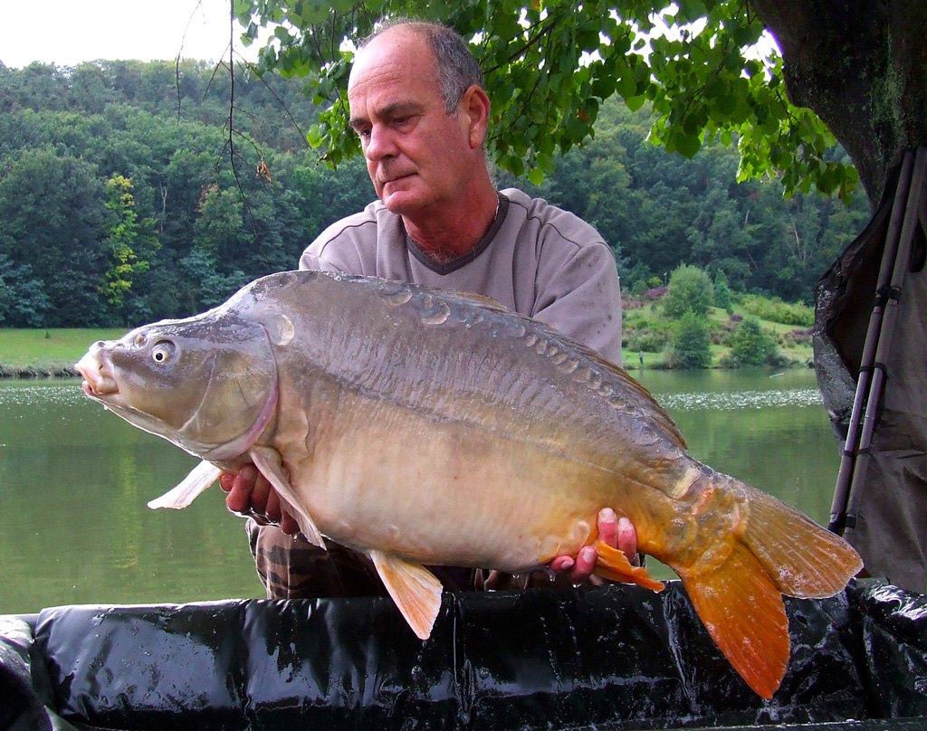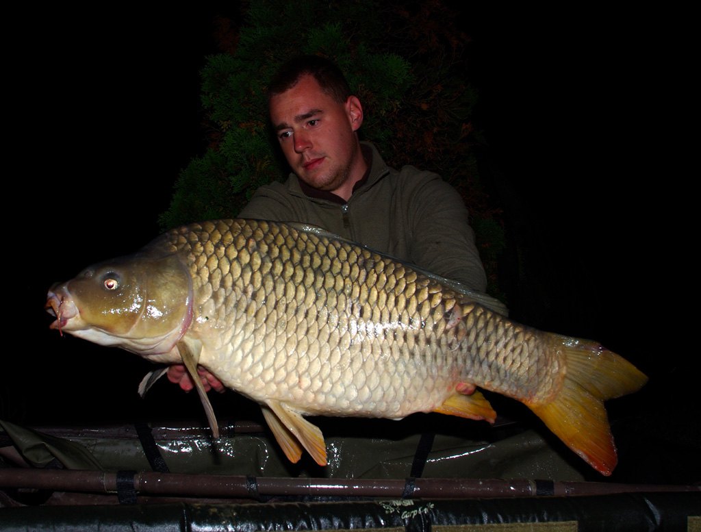 Esős időben előszeretettel használom a Nash botmatracot, ez megvédi orsóimat a sár és a homok felcsapódásától. Az éjszaka még szemerkélt az eső, amikor elaludtunk. Éjfélkor lassú húzós kapás keltett. Ráemeltem és bevágtam, azonban a hal mit sem törődött ezzel, tovább úszott megállíthatatlanul. Jó 5 perc elteltével még 1 méter damilt sem sikerült visszanyernem a haltól. Eloldalazott a gát felé, és eközben sikerült a part felé irányítani. Több kirohanás után nehezen behúztam a halat elénk, ott folytattam a fárasztást. Eltelt 20 perc és még mindig nem sikerült megpillantani a halat. A hosszadalmas fárasztás ellenére nagyon jó erőben volt és kirohanás kirohanást követett. Eltelt kb. még 10 perc, ekkor már megpillantottuk a pontyot, pikkelyein megcsillant a fejlámpa fénye. Még párszor nekiindult a mélybe, de végül csak beadta a derekát és sikerült megszákolni. Amint belefektettem a bölcsőbe a halat, láttam, hogy egy gyönyörű nyurgaponttyal küzdöttem ennyit.