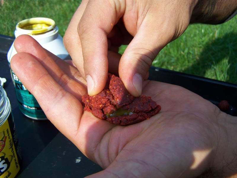 The disadvantage of using three baits is that large quantities must be kept of all types because if one taste “moves in” there is need for supplies. Please ignore the mess, this is not a competition where there is time to clear up. :)